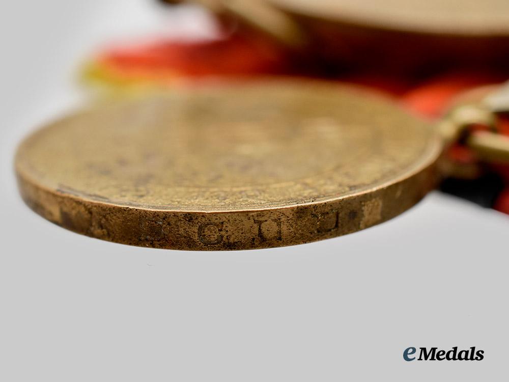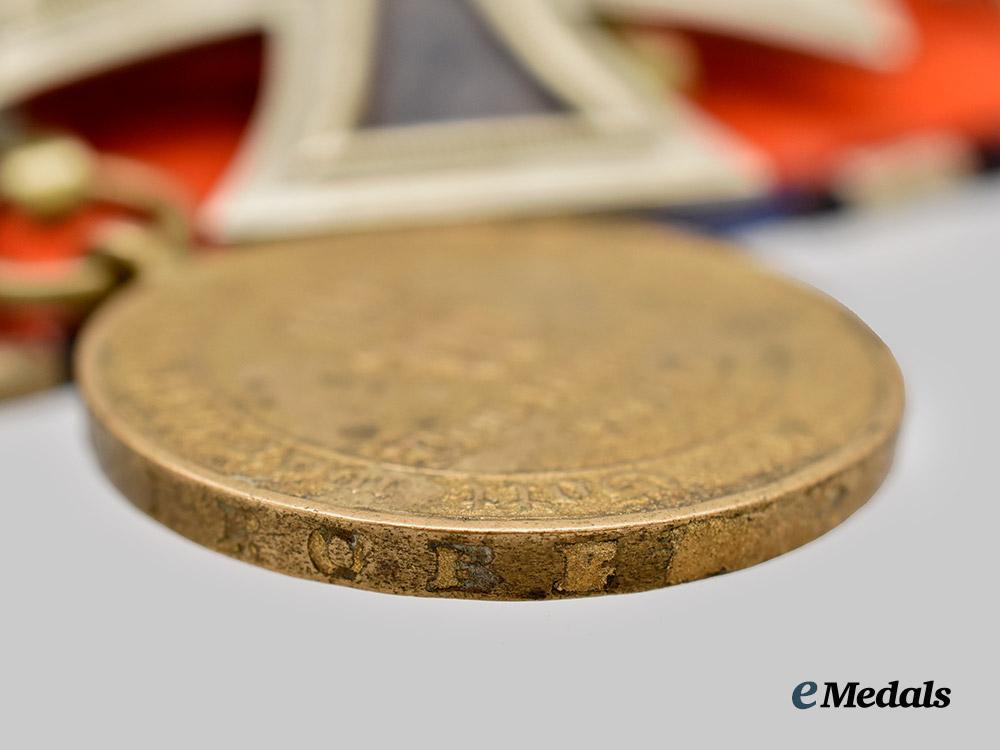 3. A War Commemorative Medal 1870/71 for Combatants, constructed of bronze, on loop for suspension with its period original ribbon pinned with “COLOMBEY-NOUILLY”, “METZ”, and “GRAVELOTTE-ST. PRIVAT” campaign clasps, unmarked, measuring 29.00 mm in diameter, weighing 14.3 grams, in better than very fine condition.