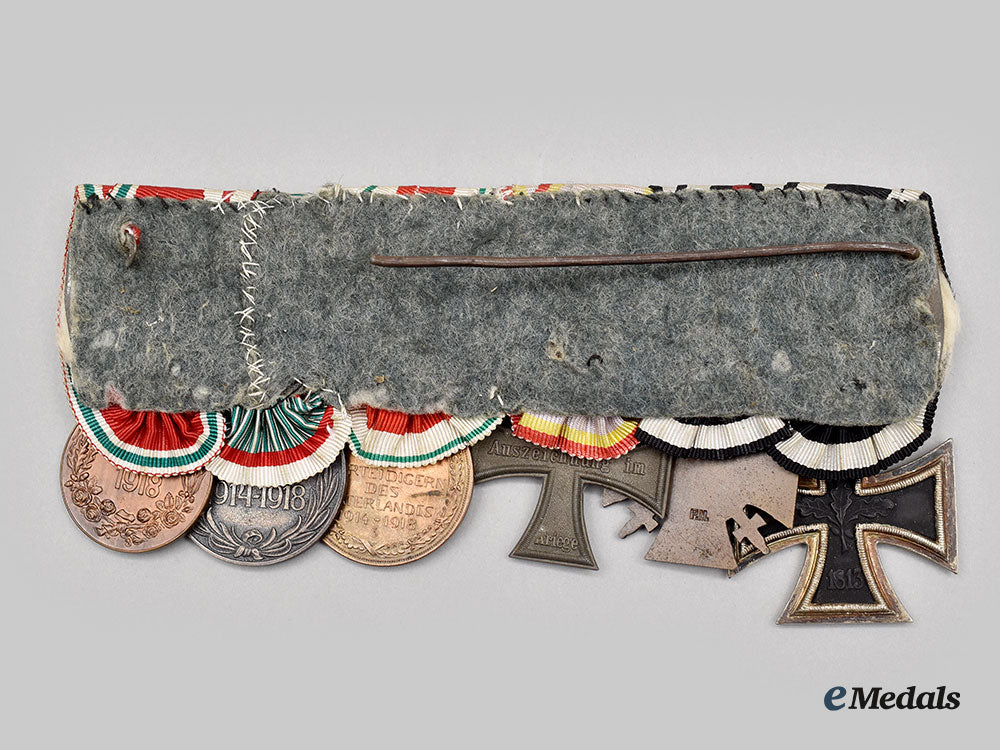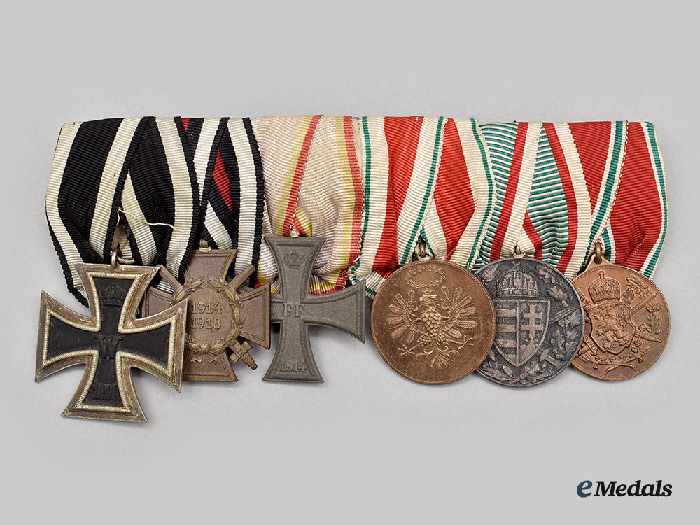 (Ordensschnalle). A medal bar for a First World War combatant featuring six decorations, including: