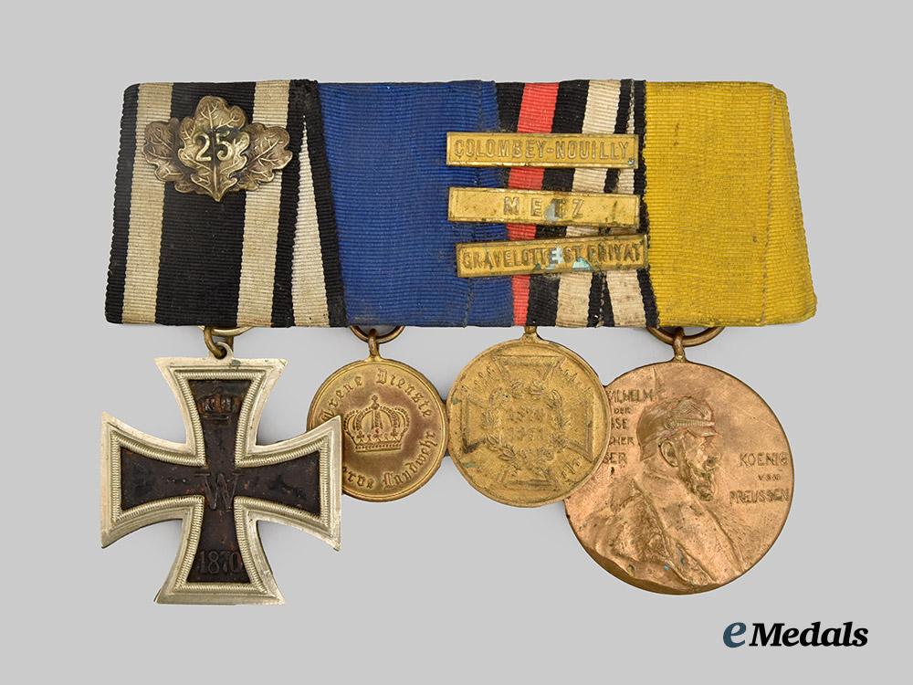 (Ordensschnalle). A medal bar for a distinguished Franco-Prussian War combatant featuring five decorations, including: