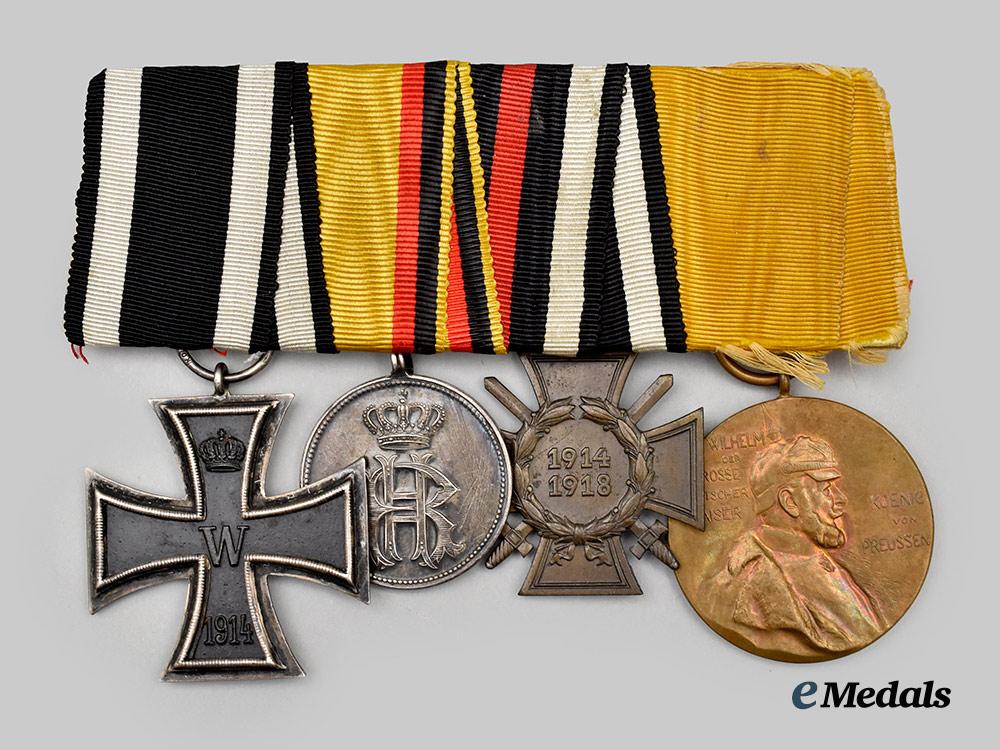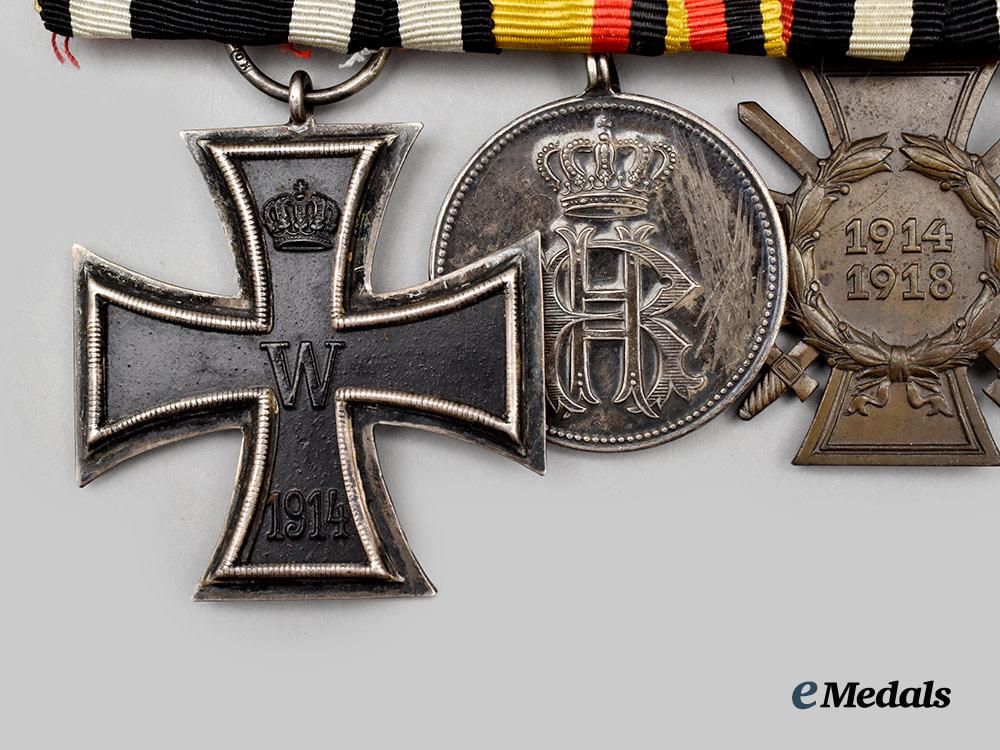 (Ordensschanlle). A medal bar for a Reuss First World War combatant featuring four awards, including: