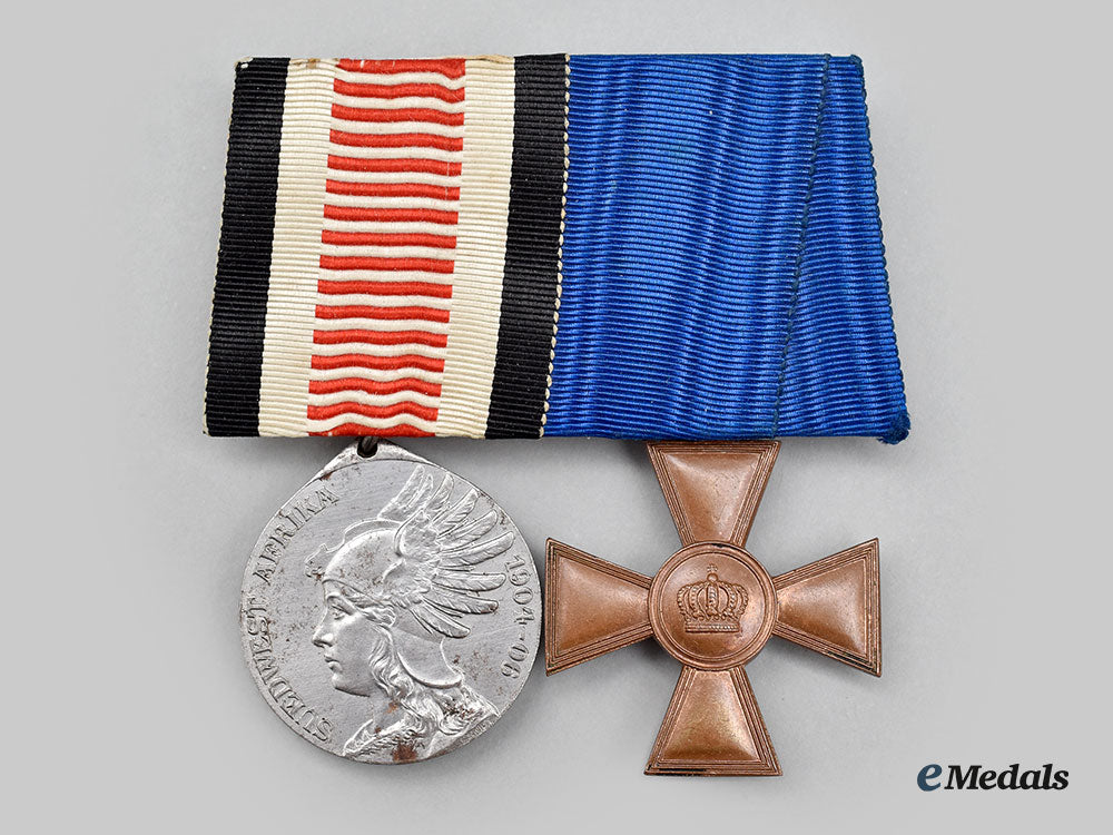 (Ordensschnalle). A medal bar for African colonial service, featuring two decorations, including: