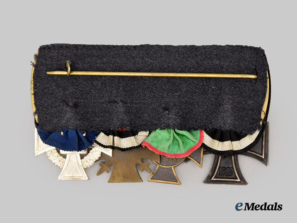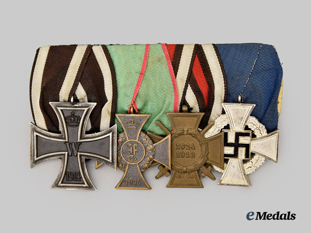 (Ordensschnalle). A medal bar for First World War and civil service featuring four awards, including;