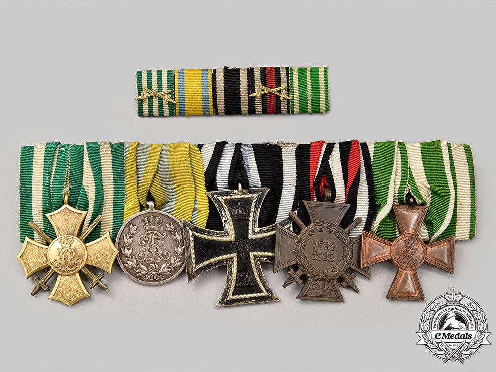 (Ordensschnalle). A medal bar for a combat veteran of the First World War featuring five decorations, including: