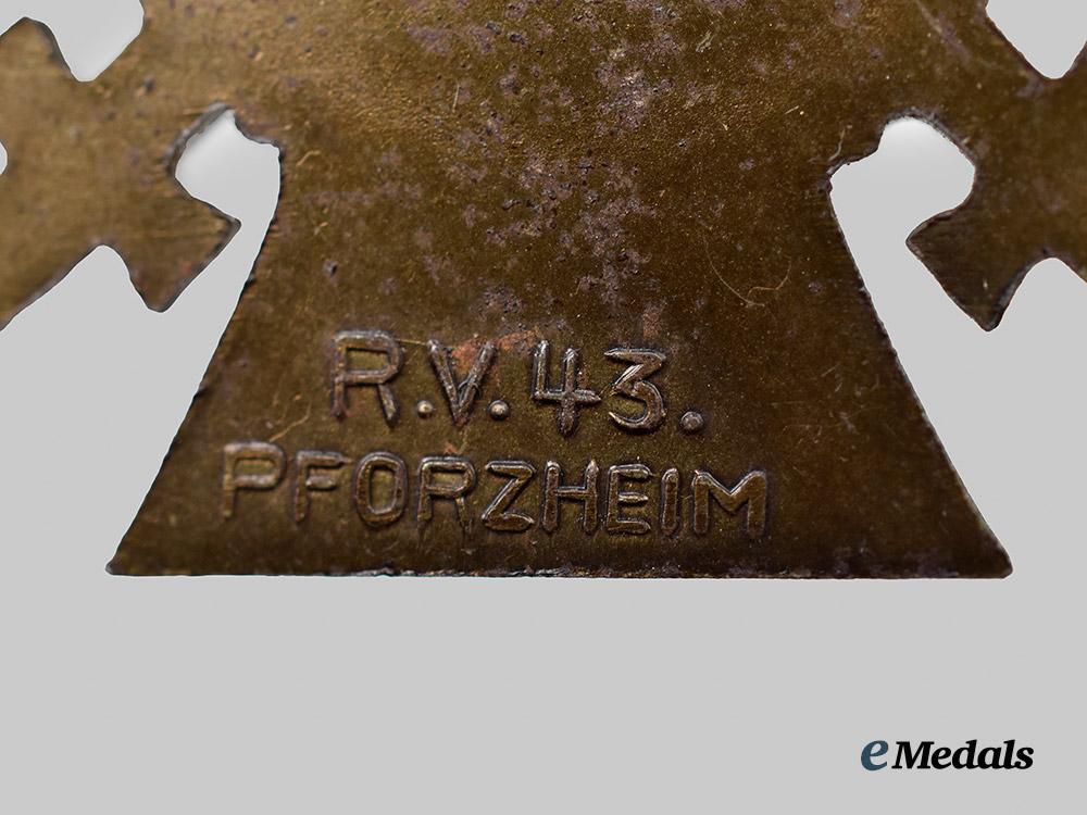 1. An Honour Cross of the World War 1914/1918 for Combatants, constructed of bronzed magnetic metal, on loop for suspension with its period original ribbon, consisting of a Cross Pattée with a crossed swords piercing the centrepiece, the obverse bearing central wreathed dates “1914-1918”, measuring 37.92 mm (w) x 43.16 mm (h), weighing 15.0 grams, demonstrating minor surface oxidation, in very fine condition.