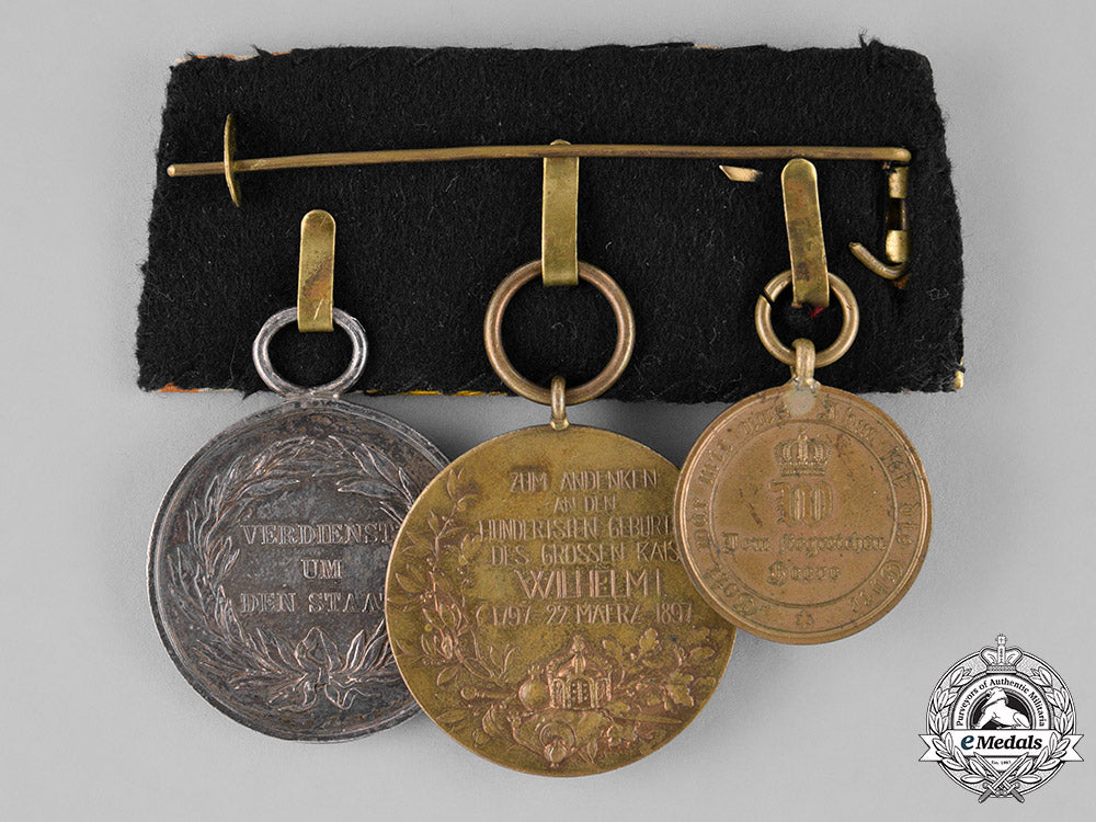 Prussia, State. A Medal Bar With Three Medals, Awards, And Decorations