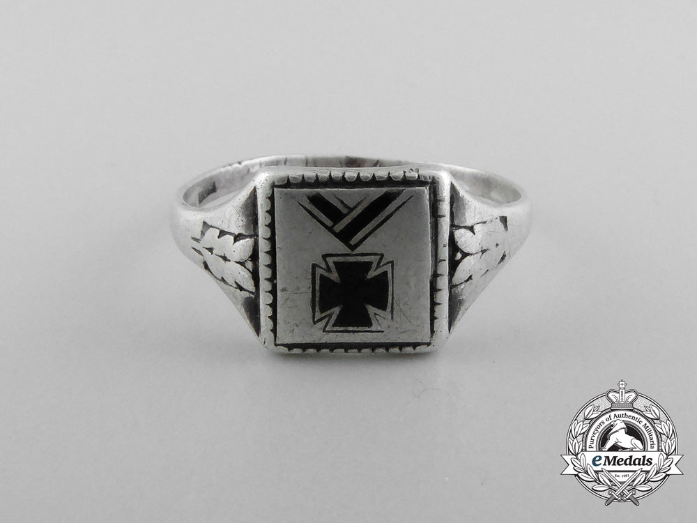 A German Imperial Silver Patriotic Ring With Iron Cross