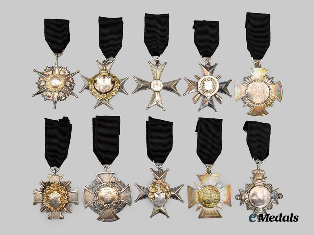 A lot of ten German Imperial Veterans Association Badges, constructed of various materials, in varying sizes, in fine to very fine condition.