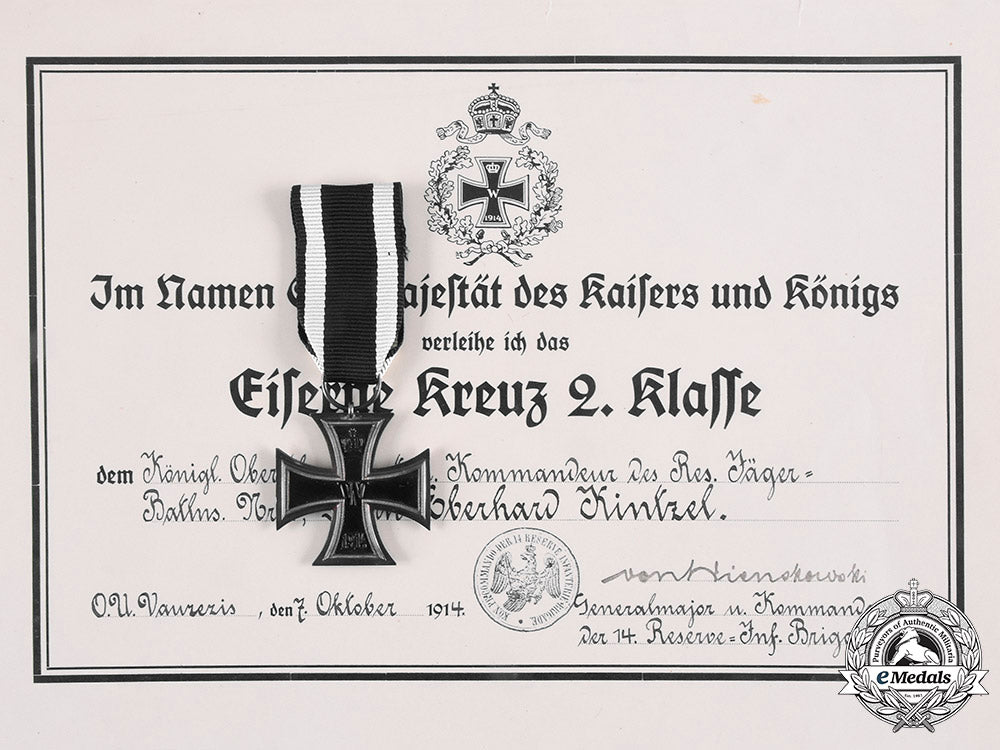 Germany, Imperial. A 1914 Iron Cross Ii Class With Document To Oberstleutnant And Commander Eberhard Kintzel