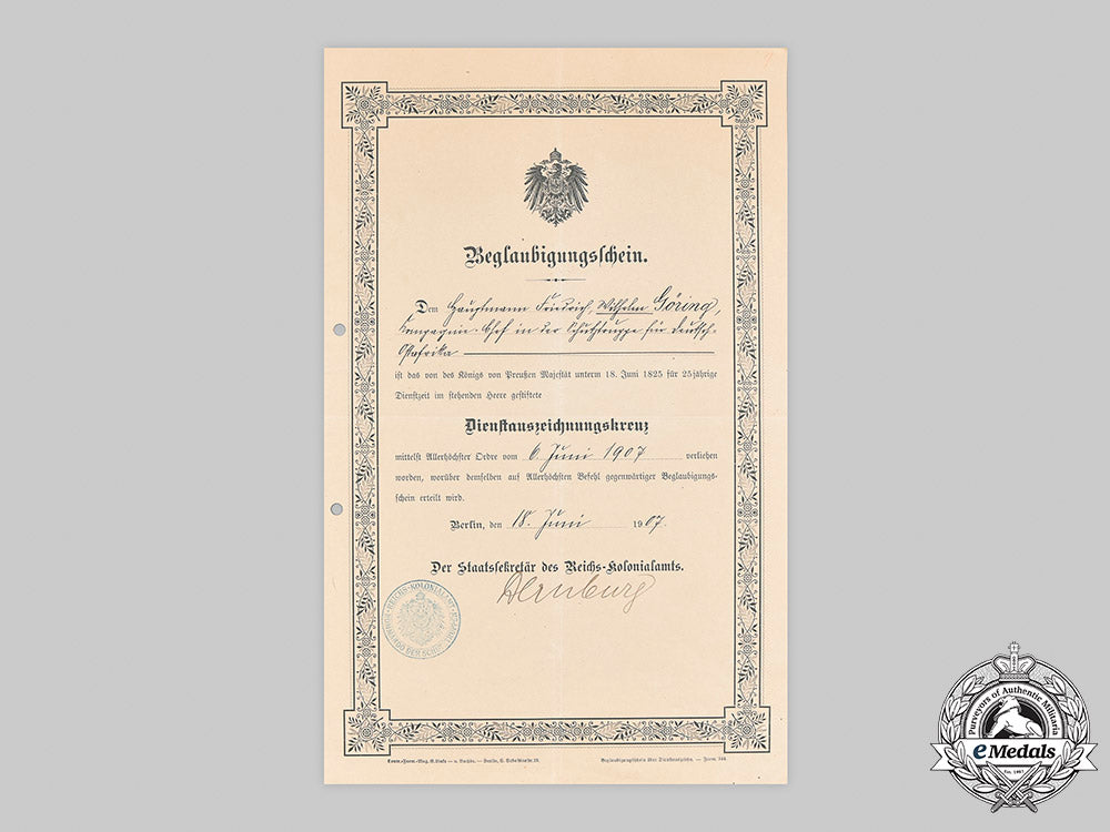 Germany, Imperial. A 25 Year Long Service Cross Certificate To Hauptmann In German East Africa