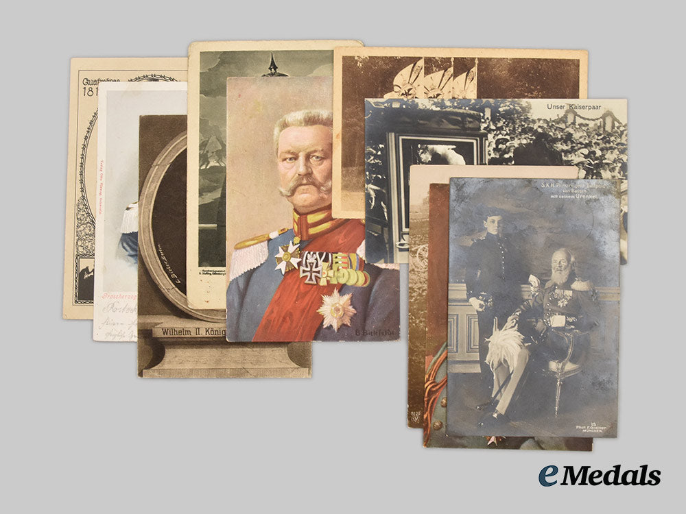 6. One featuring a black-and-white portrait of Prince Regent Luitpold of Bavaria with his great-grandson, the reverse bearing a handwritten inscription and postage dated 1912, measuring 8.5 cm (w) x 13.5 cm (h), in extremely fine condition.