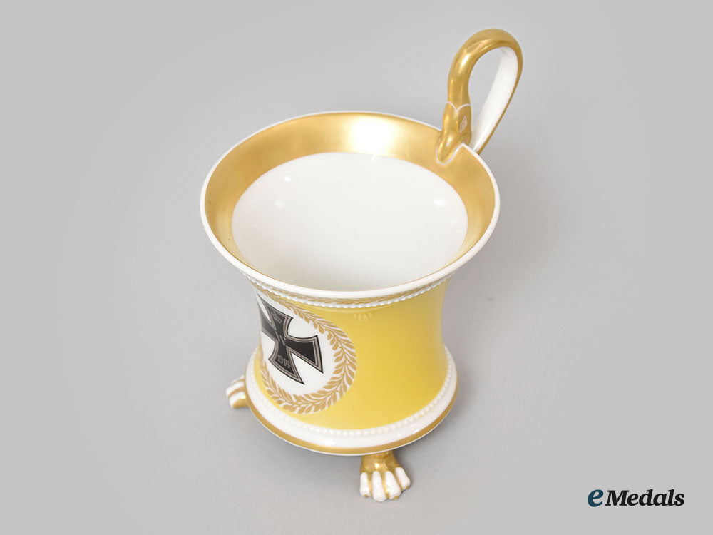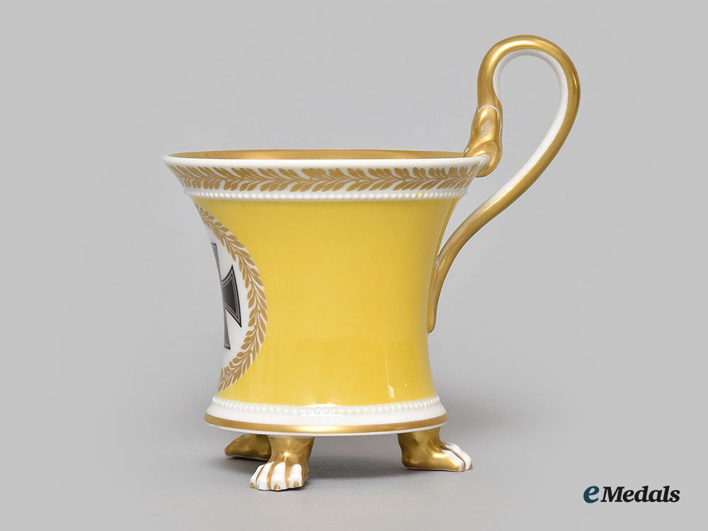 Germany, Imperial. A Yellow Glazed Kpm Clawfoot Cup With Iron Cross Motif
