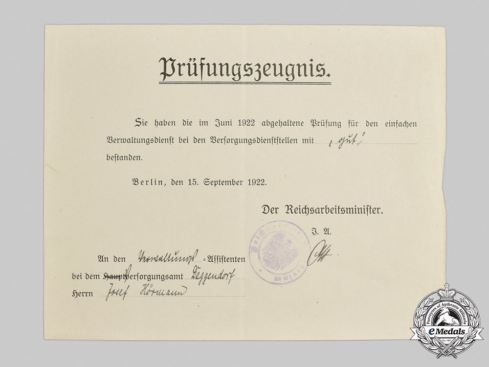 Germany, Imperial. The Estate Of First War Veteran & Bavarian Governmental Inspector Josef Hörmann