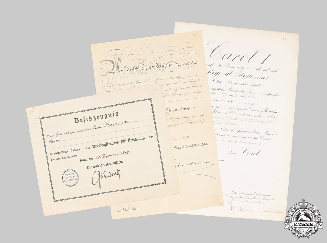 Germany, Imperial. Three Award Documents, Romanian & Prussian
