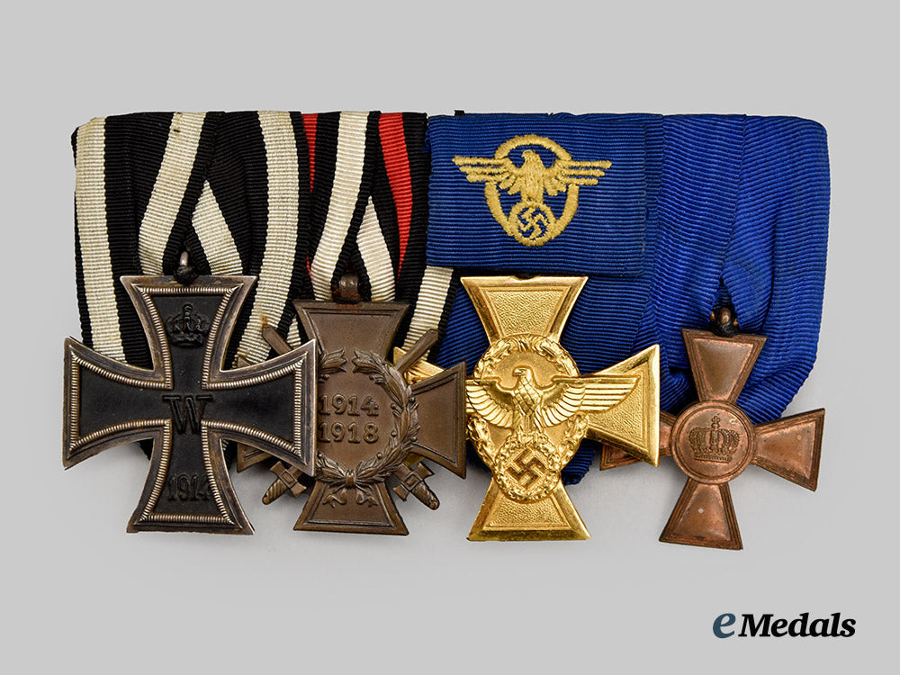 (Ordensschnalle). A medal bar for First World War and Police service featuring four decorations, including: