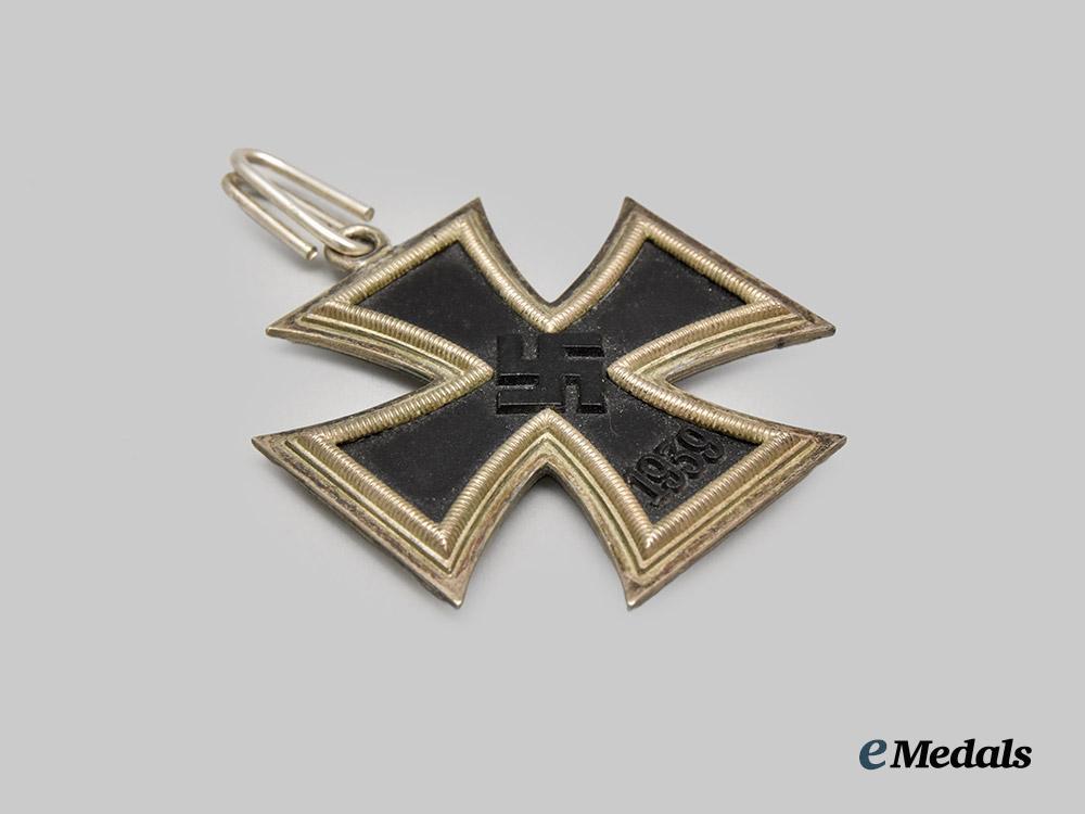 (Ritterkreuz des Eisernen Kreuzes, Museumsstück). Constructed of neusilber, consisting of a Cross Pattée with a blackened zink alloy core situated within a ribbed and silvered frame, the obverse with a central mobile swastika, the six o’clock arm with a reinstitution date of “1939”, the reverse six o’clock arm with an initial institution date of “1813”, the twelve o’clock arm culminating in an integral loop and suspension ring retaining a period original ribbon, unmarked, measuring 48.32 mm (w) x 54.32 mm (h), weighing 27.2 grams (inclusive of ring), accompanied by its original presentation case, constructed of a wooden frame with a faux black leather exterior liner, the interior with a white rayon lid liner and intact hinge cover, with a fitted black felt medal bed, closing with a functional metal spring catch with exterior stud release, unmarked, measuring 80 mm (w) x 145 mm (l) x 25 mm (h), demonstrating minor loss of finish to the core, an early and fine-quality exhibition example in overall extremely fine condition.