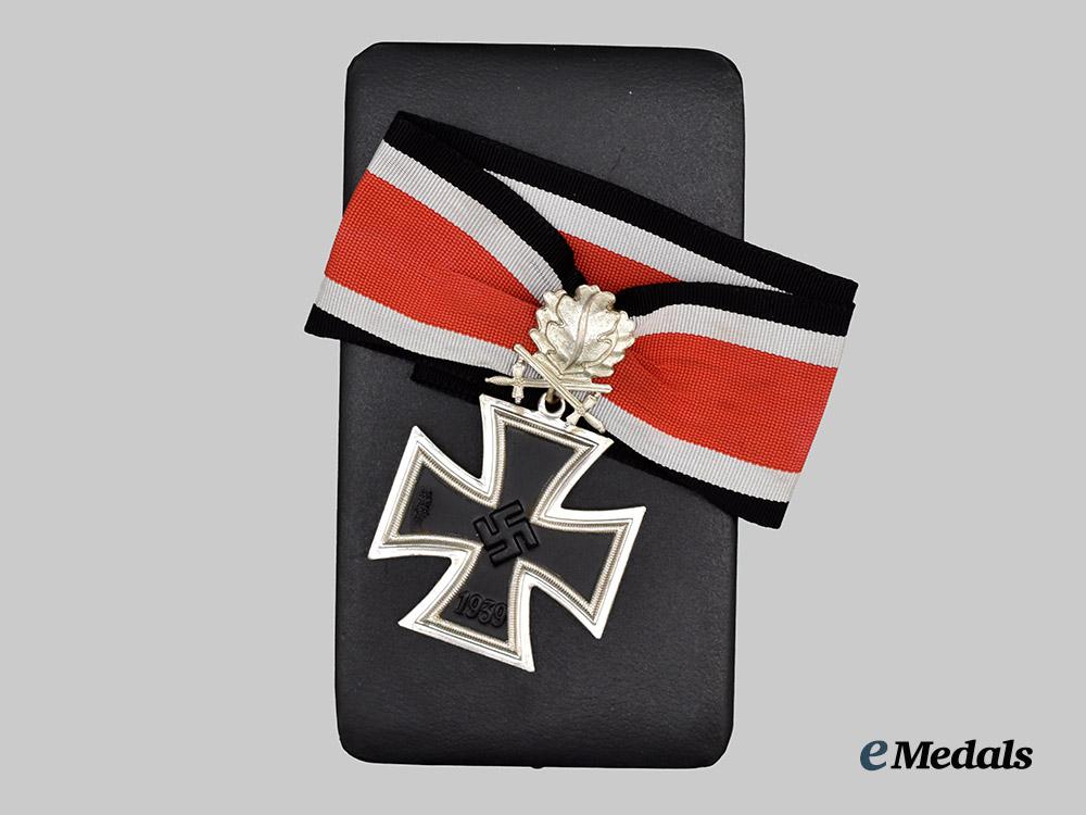 Germany, Federal Republic. A Knight’s Cross of the Iron Cross with Oak Leaves, Swords, and Case, Exhibition Example by Rudolf Souval, c. 1980