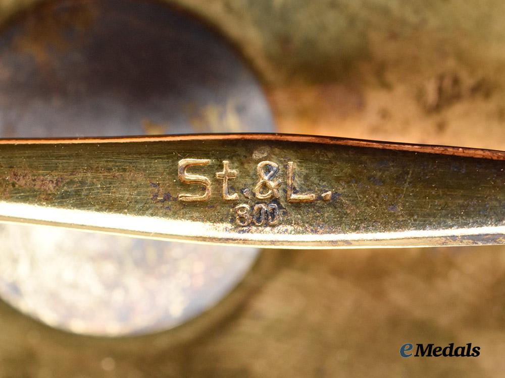 3. A boutonniere miniature, constructed of gilded bronze with enamels, the base of the button measuring a maker’s mark of “STEINHAUER & LÜCK, LÜDENSCHEID”, in extremely fine condition.