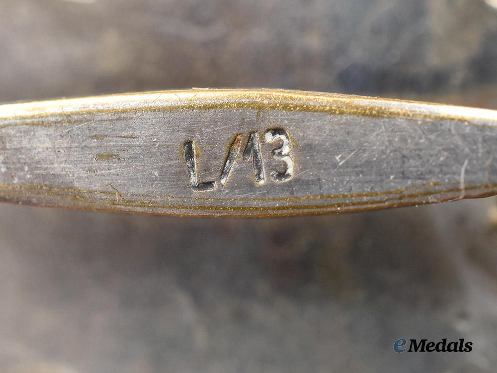 (Eisernes Kreuze 1939 I. Klasse). Constructed of iron and silver, consisting of a Cross Pattée with a blackened magnetic iron core within a ribbed silver frame, the obverse with a central mobile swastika, the six o’clock arm with a reinstitution date of “1939”, the reverse with a block hinge and banjo-style pinback meeting a round wire catch emanating from an oval base plate, the pinback maker marked with LDO code “L/13” for Paul Meybauer, Berlin, measuring 44.51 mm (w) x 44.42 mm (h), weighing 16.1 grams, the cross demonstrates crude refinishing with evidence of surface oxidation, the catch has been replaced, and a rivet has been punished through the reverse of the six o’clock arm for an unknown purpose, a refurbished example in fair condition.