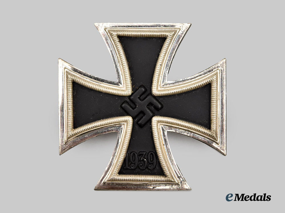 (Eisernes Kreuz 1939 I. Klasse). Reinstituted 1 September 1939. (1939-1945 issue). Constructed of iron and silver, consisting of a Cross Pattée with a blackened magnetic iron core within a ribbed silver frame, the obverse with a central mobile swastika, the six o’clock arm with a reinstitution date of “1939”, the reverse with a block hinge and vertical pinback meeting a round wire catch, maker marked with LDO code “L/11” for WIlhelm Deumer, Lüdenscheid, measuring 43.71 mm (w) x 43.86 mm (h), weighing 15.9 grams, a stunning example in near mint condition.