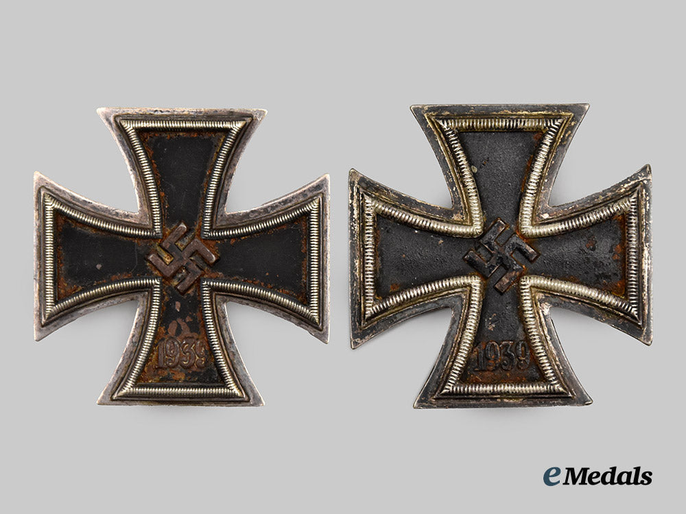 (Eisernes Kreuz 1939 I. Klasse). A pair of 1939 Iron Crosses I Class, including: