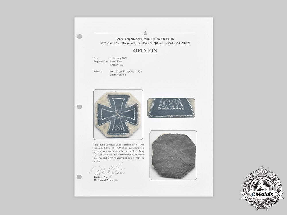 Germany, Wehrmacht. A Rare 1939 Iron Cross I Class, Cloth Version