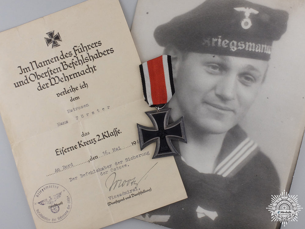 An Iron Cross Second Class & 1940 Document To The Kriegsmarine