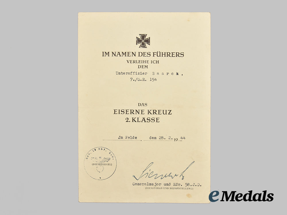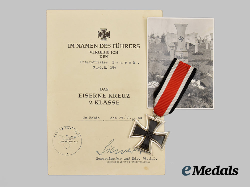Germany, Heer. A 1939 Iron Cross II Class, with Award Document and Memorial Photo, to Unteroffizier WIlhelm Baarck