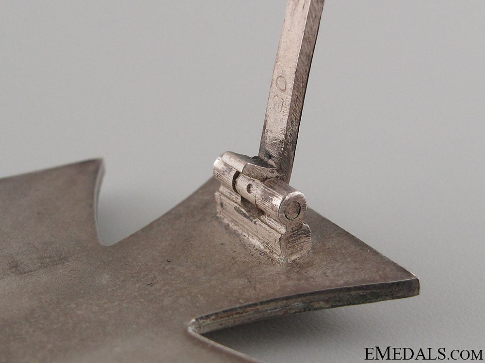 Iron Cross 1st Class 1939 by Zimmermann - Silver, iron core, magnetic, maker marked "20" (C.F. Zimmermann, Pforzheim) on the underside of the pin, 44 mm, vertical pinback, light wear on the black paint exposing the iron core, very fine. In its hardshelled case of issue, slotted medal bed, soiled inner lid, case also very fine.