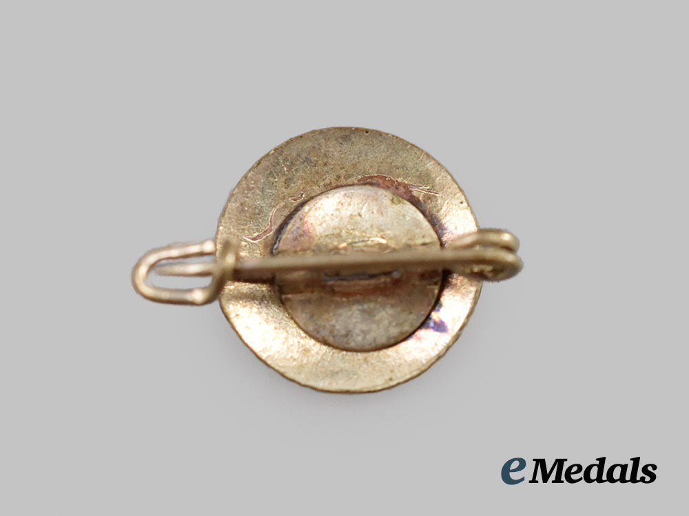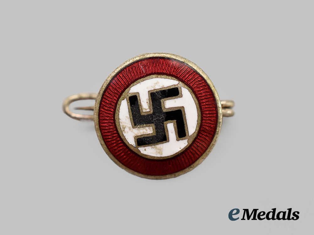 (NSDAP Mitgliedsabzeichen). Constructed of silvered bronze with multi-coloured enamels, diagonal pinback, unmarked, measuring 12 mm in diameter, demonstrating minor flecking to the enamels, an early NSDAP member’s/supporter’s badge in extremely fine condition.