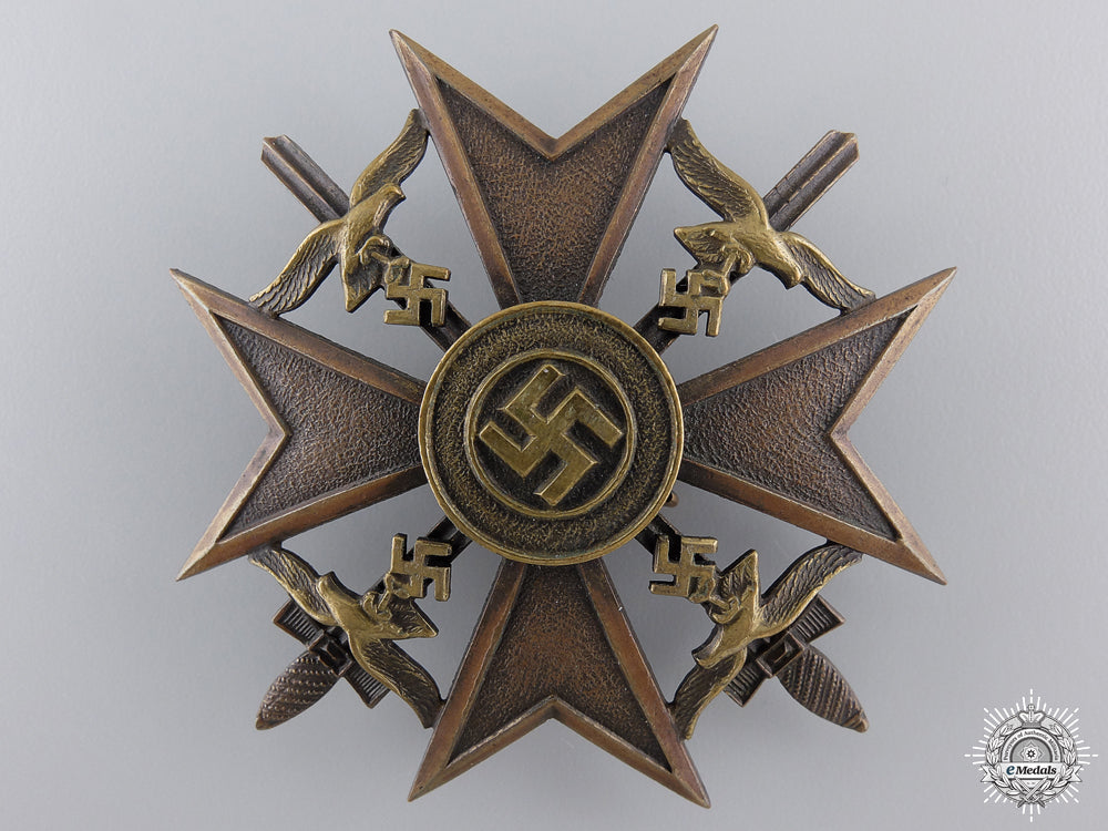 A Rare Screw Back Spanish Cross With Swords; Bronze Grade