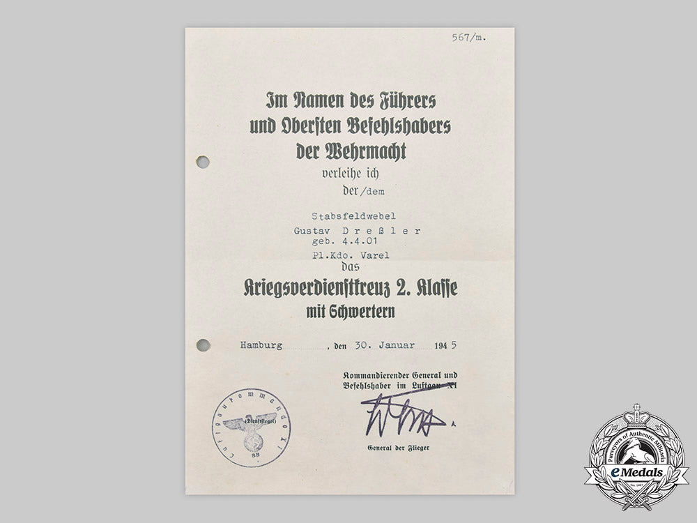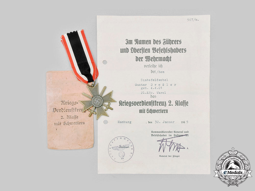 Germany, Luftwaffe. A War Merit Cross Ii Class With Swords, With Award Document, By Klein & Quenzer