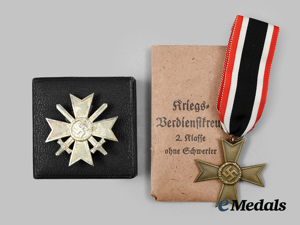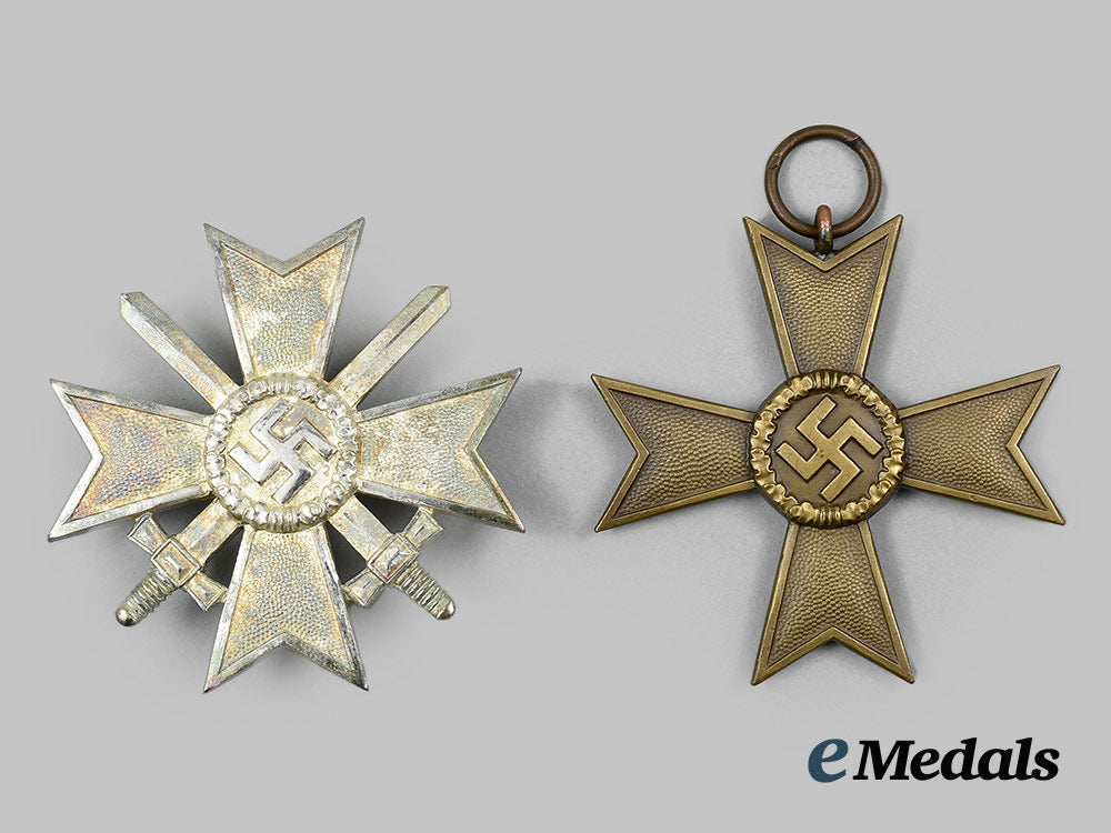 (Kriegsverdienstkreuze). A pair of War Merit Crosses, including: