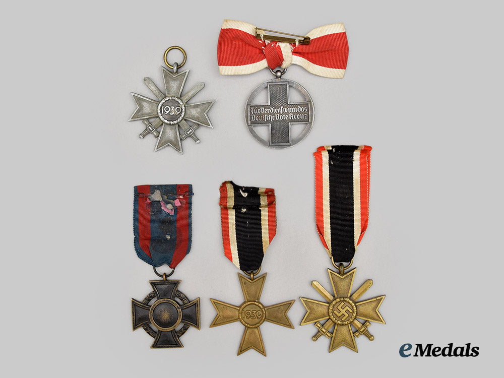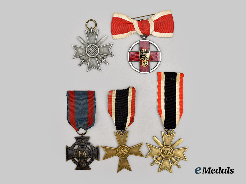 A grouping of five third Reich German medals and awards, all with light to moderate loss to the finish from wear, in overall near very fine condition.
