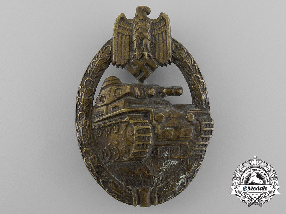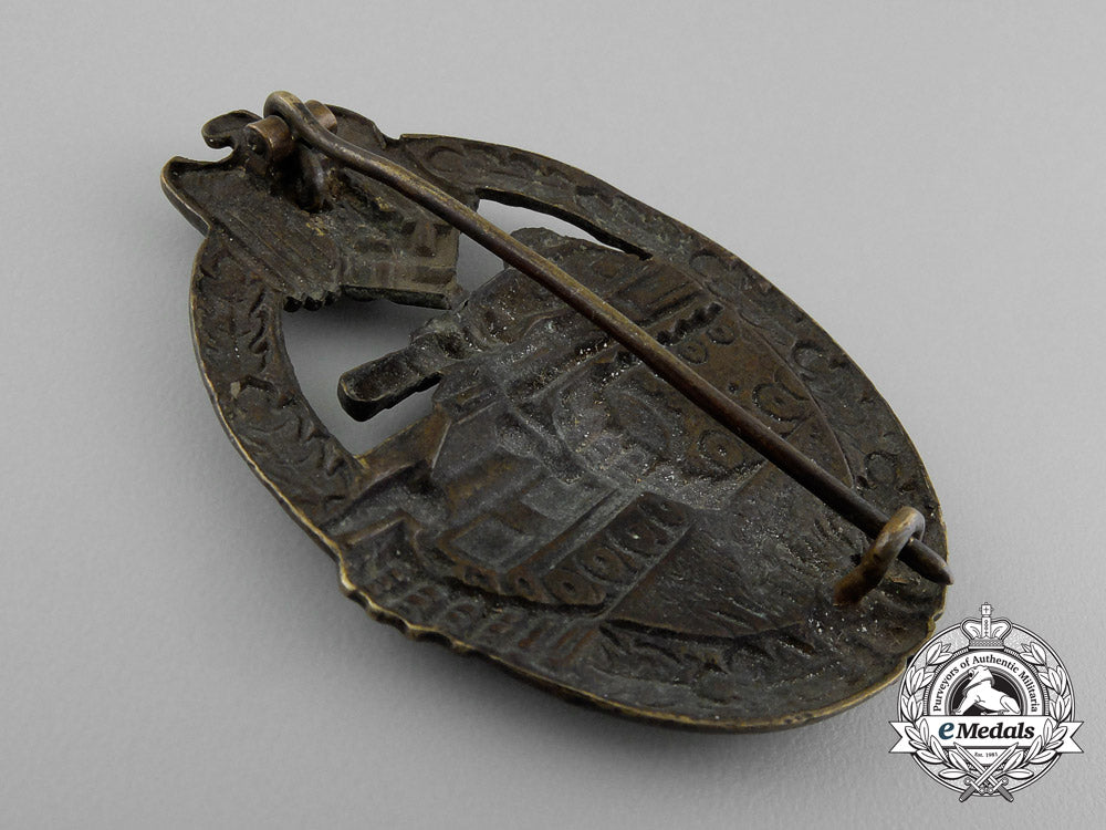 An Early Panzer Badge; Bronze Grade In Tombac