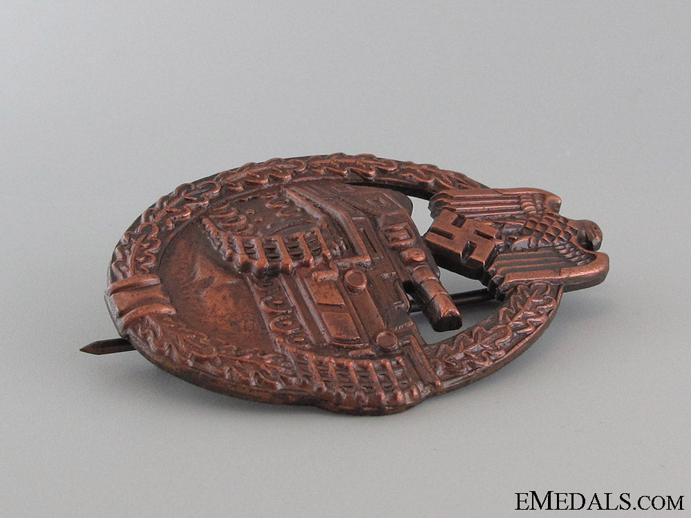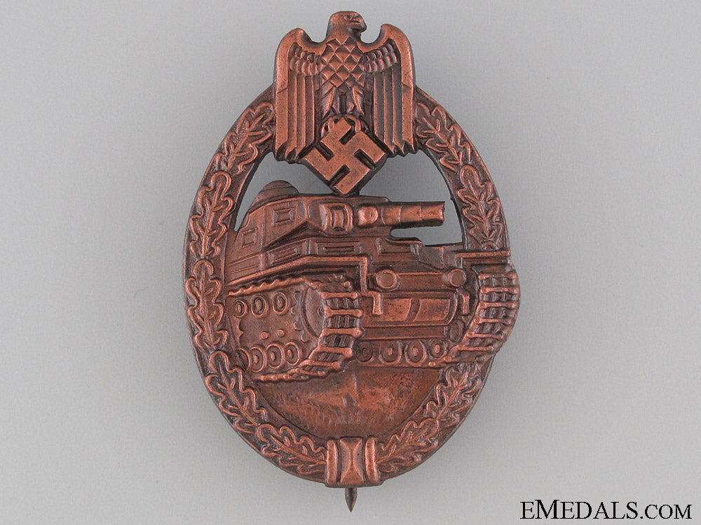 Tank Badge - Bronze Grade by R.S., in bronzed zinc, by maker R.S. (marked on reverse), WWI production (this type is considered as the first type made by R. Souval) by in unworn, mint condition.