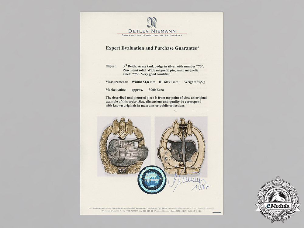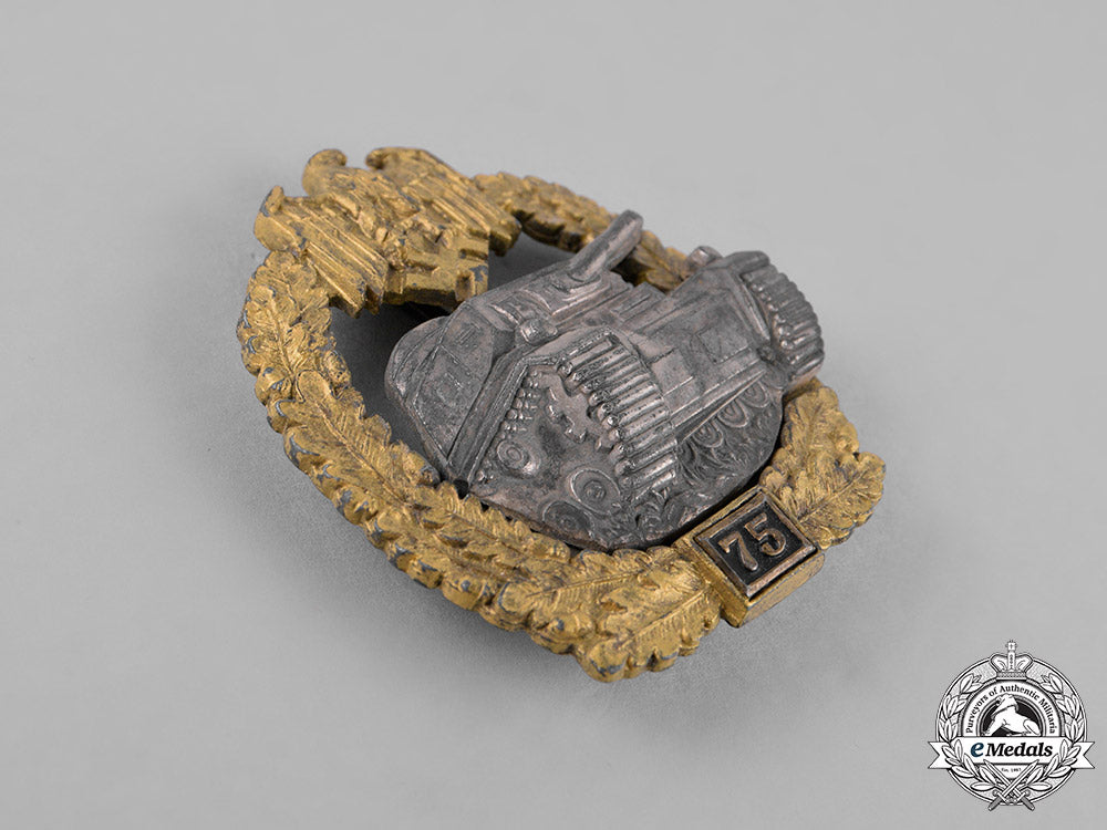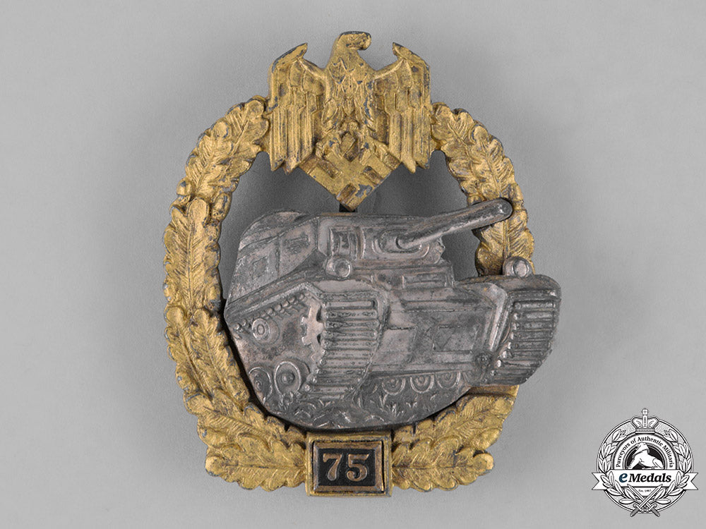 Germany, Third Reich. A Special Grade Tank Badge For 75 Panzer Engagments, Later Semihollow Juncker