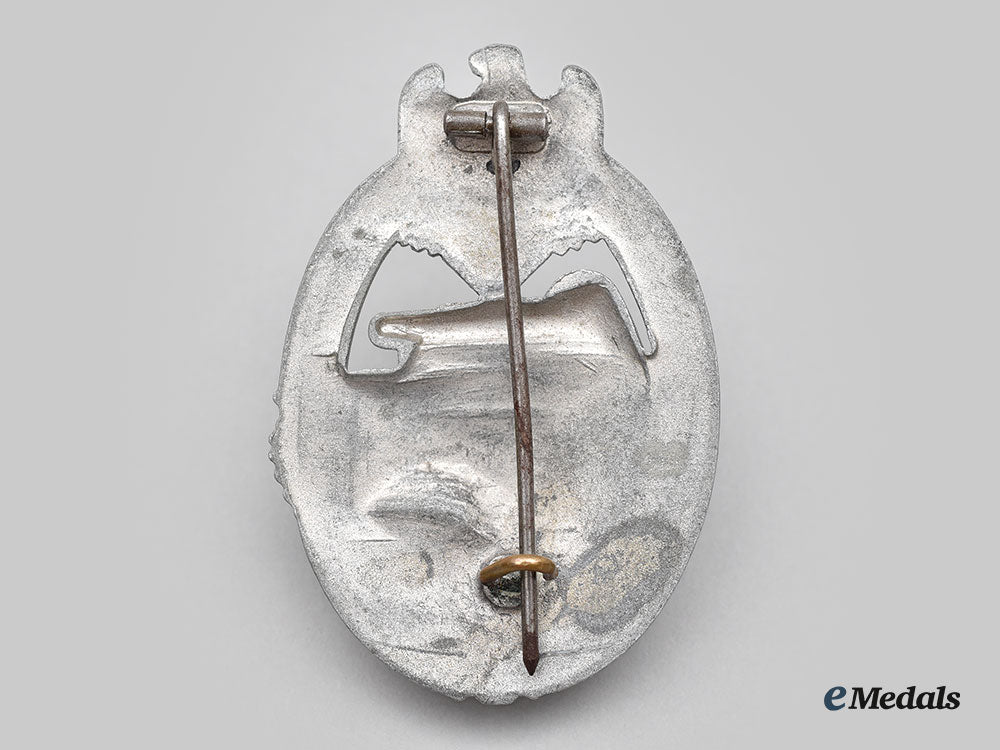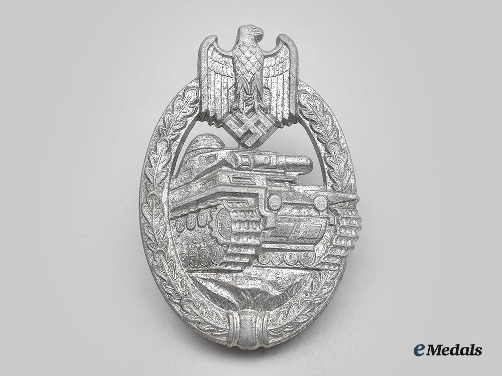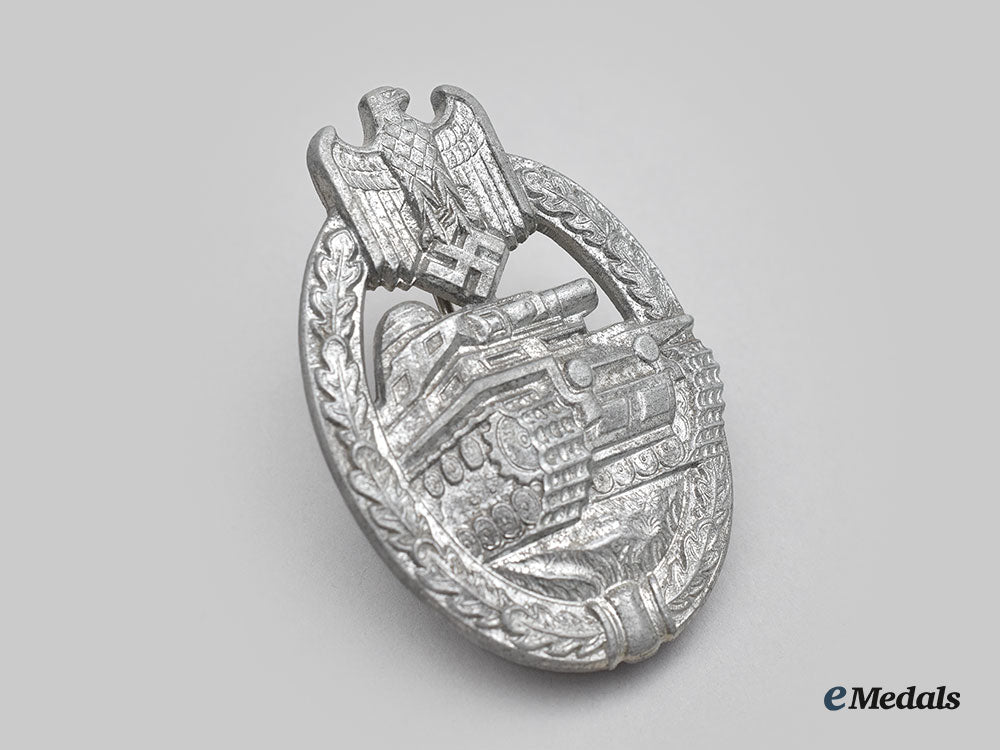 Germany, Wehrmacht. A Mint Panzer Assault Badge, Silver Grade, Semi-Hollow Daisy Variant