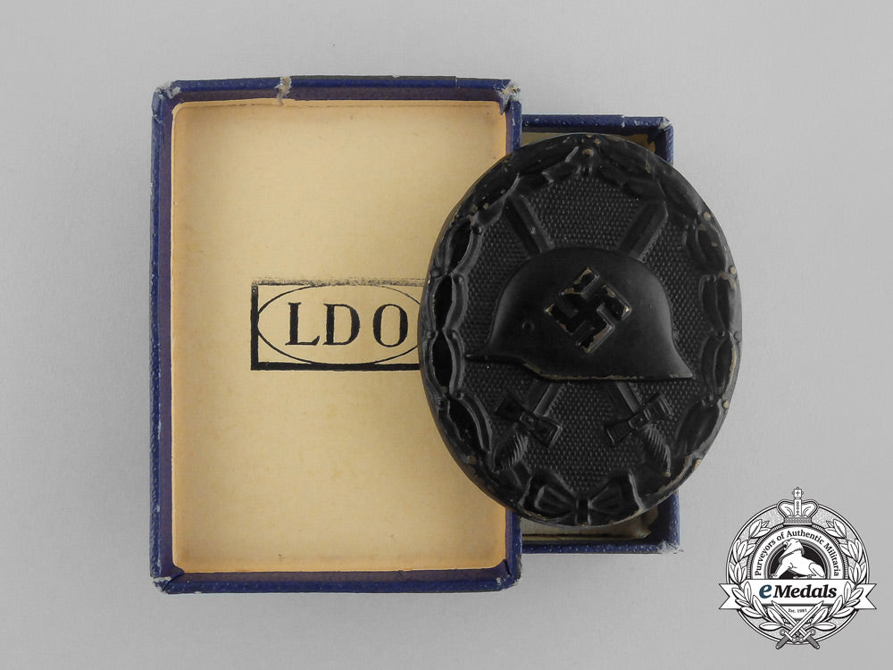 A Second War German Black Grade Wound Badge In Its Original Ldo Box Of Issue