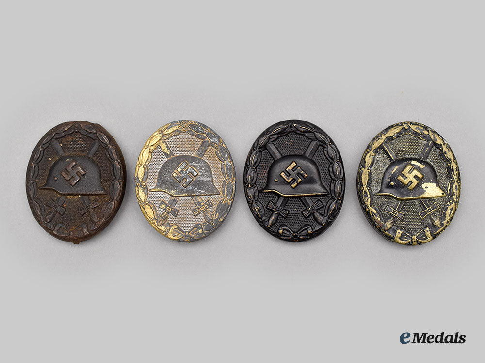 (Verwundetenabzeichen). A lot of four Wound Badge, including: