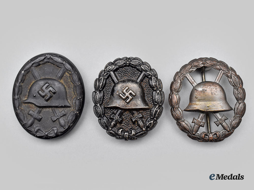 (Verwundetenabzeichen). A mixed lot of three Wound Badges, including: