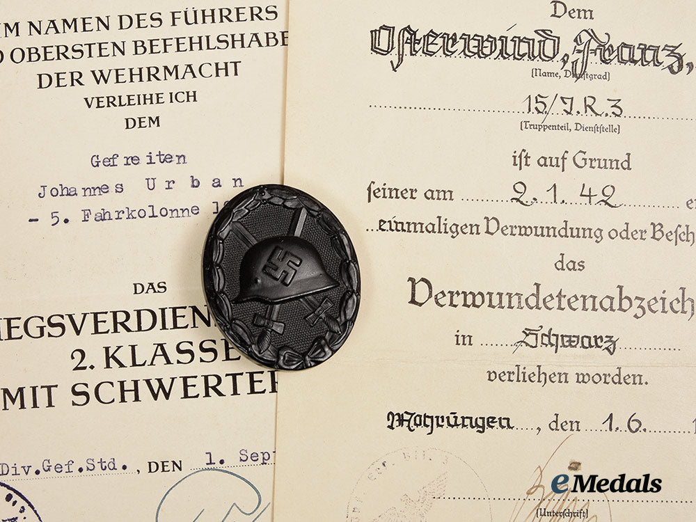 Germany, Wehrmacht. A Black Grade Wound Badge, With Award Documents