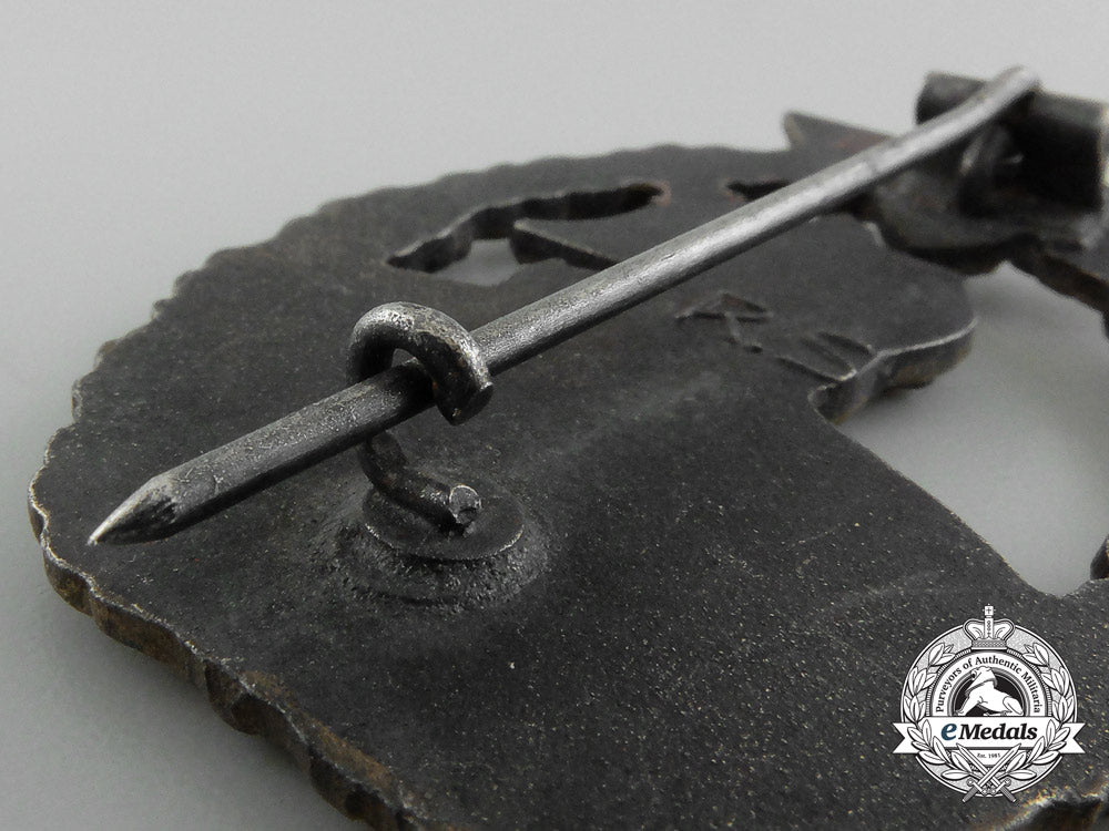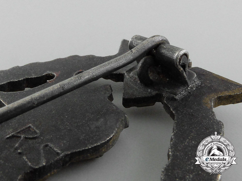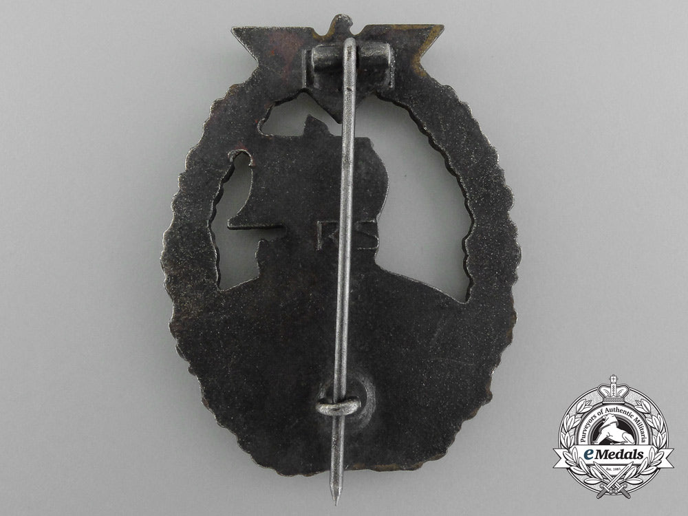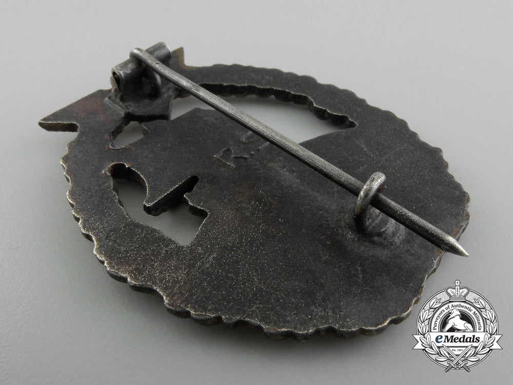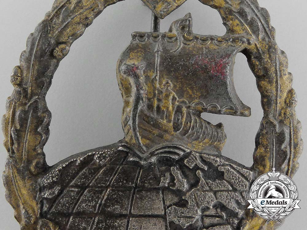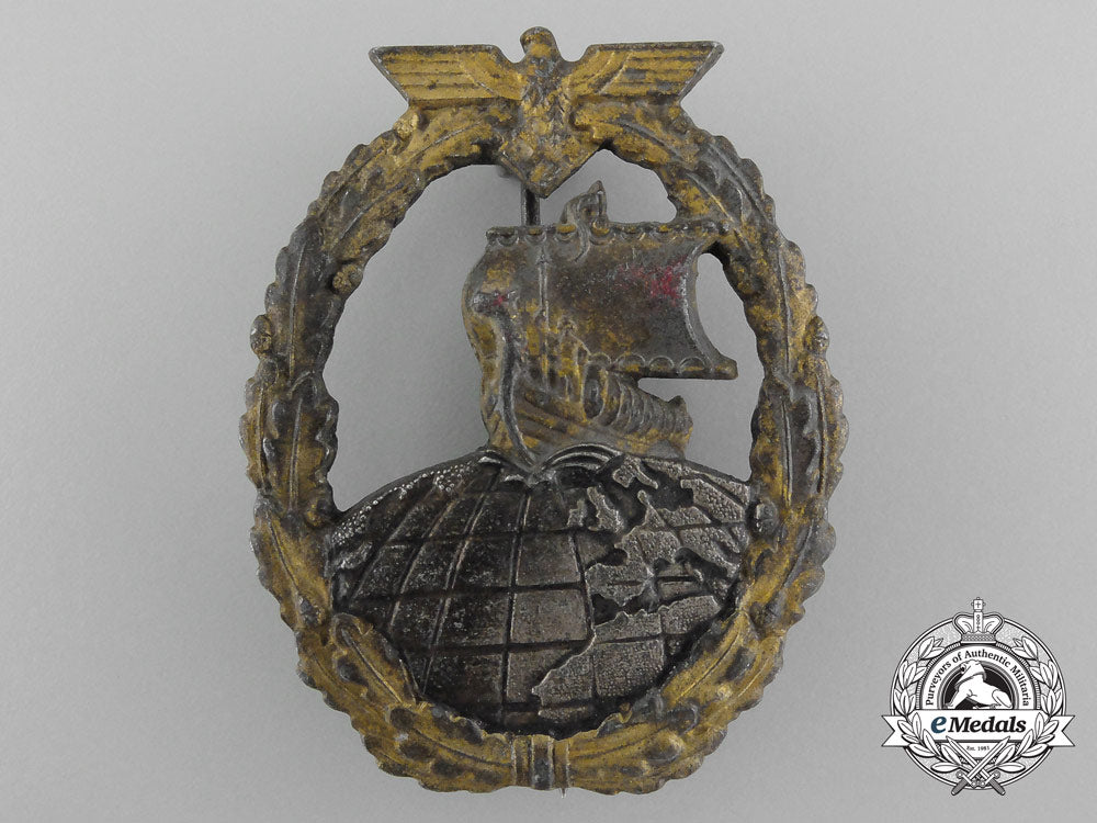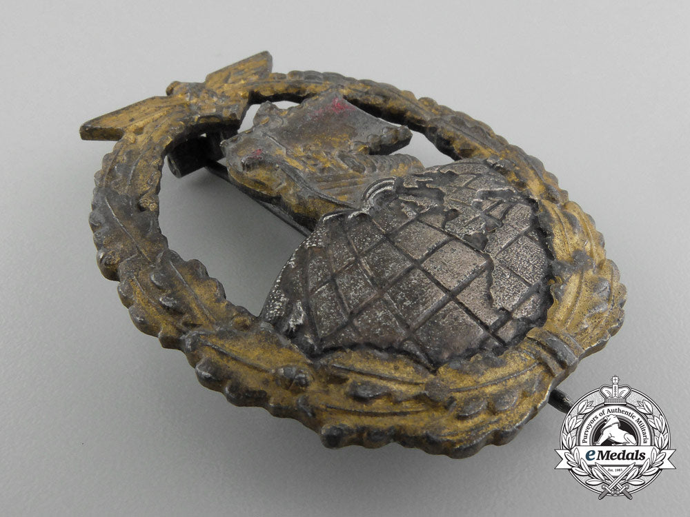 A Kriegsmarine Naval Auxiliary War Badge by R.Souval - In zinc alloy, with most of the gilded finish remaining, globe silvered, maker marked on reverse "R.S." (for R. Souval), in very fine condition.