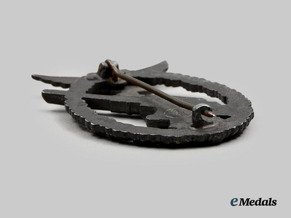 (Flak-Kampfabzeichen der Luftwaffe). Constructed of silvered zink, the obverse consisting of an oval oak leaf wreath, joined together at the bottom by ribbon, topped by a Luftwaffe eagle clutching a mobile swastika, surrounding a central Flak 88 with its barrel raised and extending beyond the edge of the wreath, the reverse with two visible rivets securing the eagle in position, with a narrow integral hinge and vertical pinback meeting an integral catch, maker marked with the logo of Gebrüder Wegerhoff, Lüdenscheid, measuring 44.62 mm (w) x 64.02 mm (h), weighing 28.0 grams, demonstrating loss of silver finish throughout, in near extremely fine condition.
