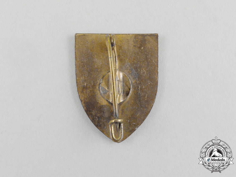 A badge, gilded bronze, enameled, measuring 20x26mm, near mint condition with fresh colours. A wartime photo, measuring 103x71mm, near mint condition. Four copies of letters, measuring 209x297mm, mint condition.
