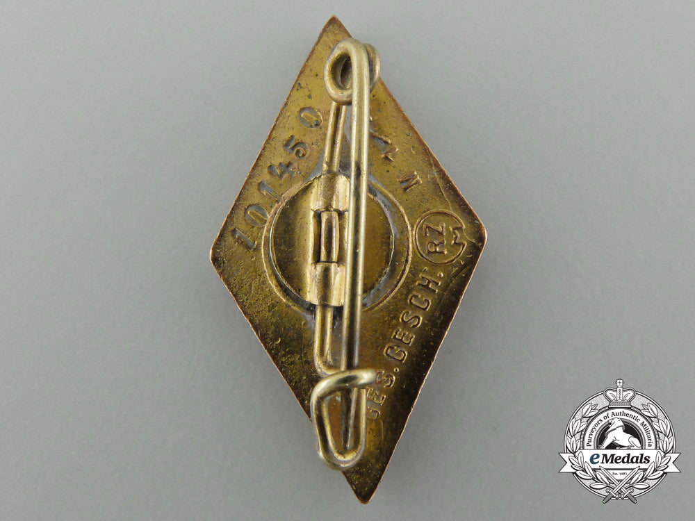 A Golden Hj Youth Member’s Honour Badge By Adolf Baumeister