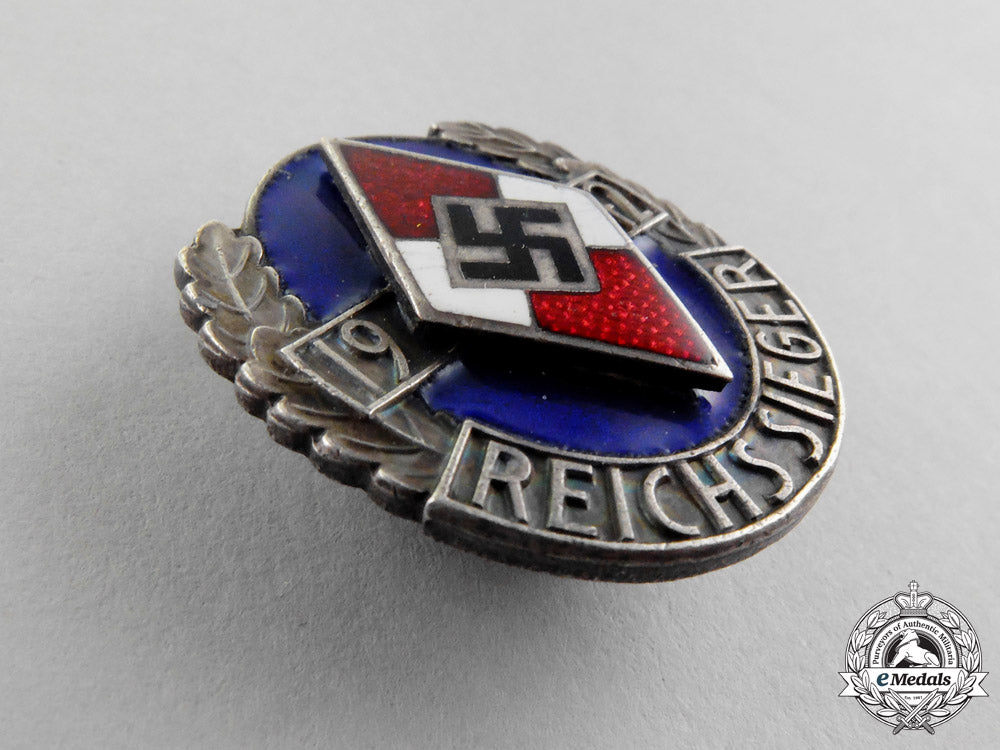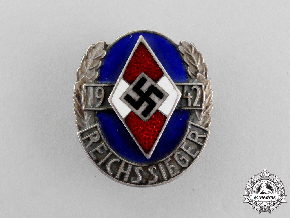 Germany. A Rare 1942 Hj Honour Badge Of The National Champions In Silver