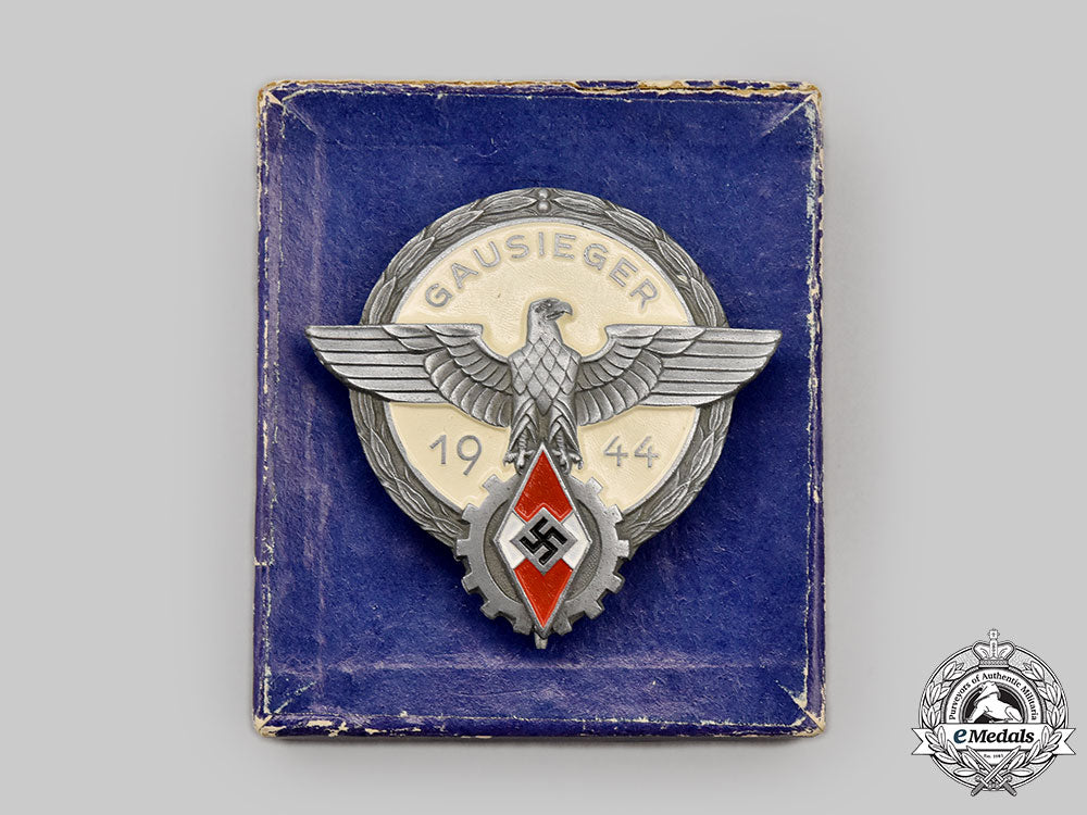 Germany, Hj. A 1944 National Trade Competition Victor’s Badge, Silver Grade With Case, By Gustav Brehmer