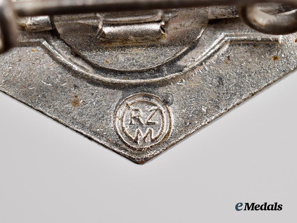 1. A general membership badge, constructed of silvered bronze with multi-coloured enamels, vertical pinback, the reverse marked with a Reichszeugmeisterei (RZM) logo and maker code “M1/103” for Carl Poellath, Schrobenhausen, measuring 15 mm (w) x 26 mm (h), in extremely fine condition.