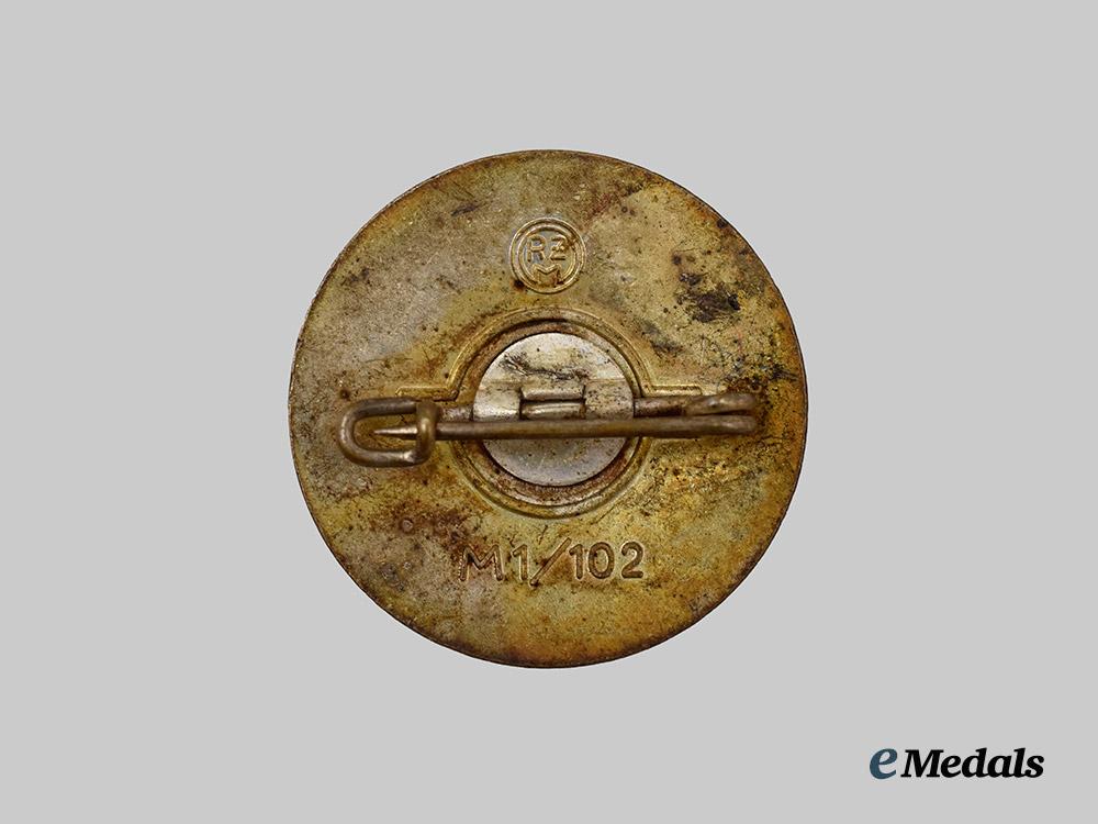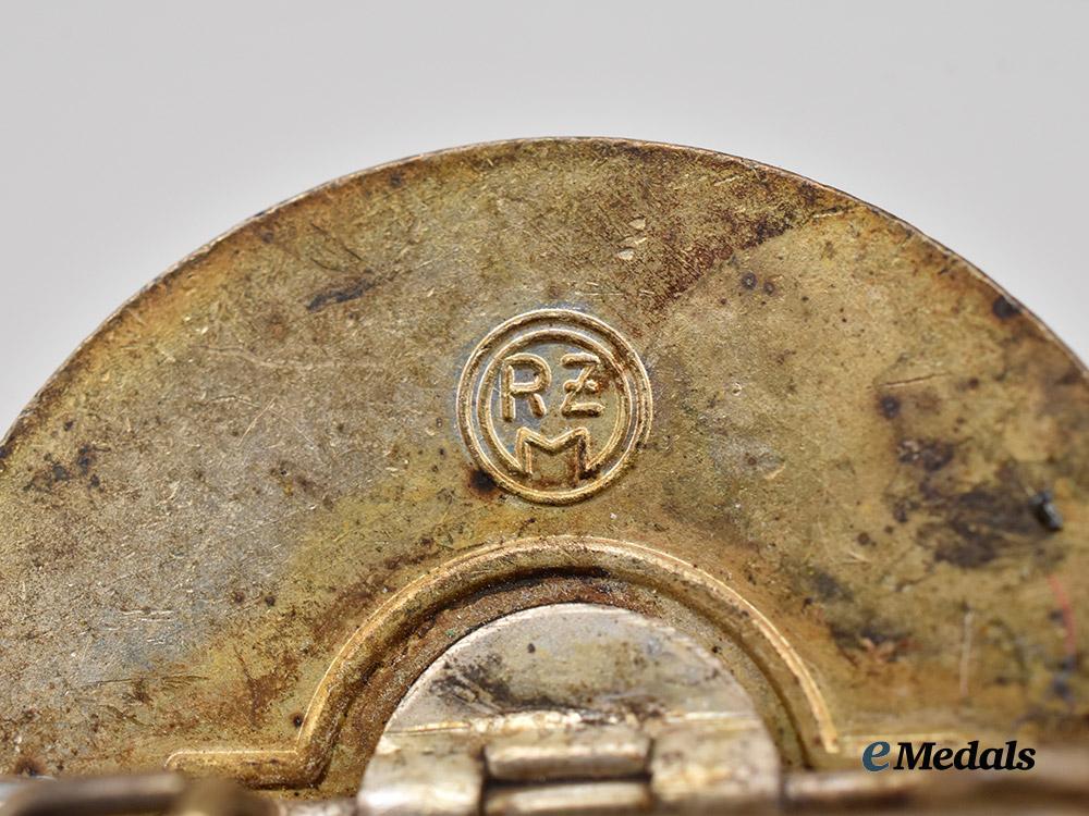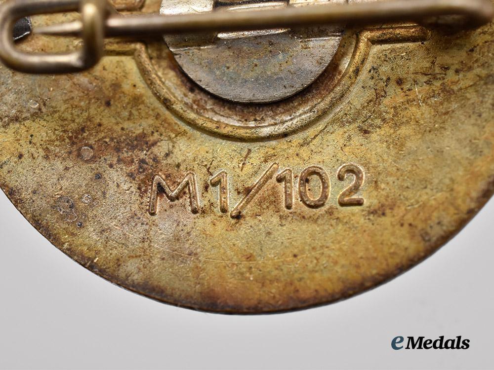 (HJ Schießauszeichnung für Scharfschützen). Constructed of silvered bronze with multi-coloured enamels, horizontal pinback, the reverse marked with a Reichszeugmeisterei (RZM) logo and maker code “M1/102” for Frank & Reif, Stuttgart, measuring 25 mm in diameter, demonstrating loss of silver finish throughout the base metal and some flecking to the enamels, in very fine condition.