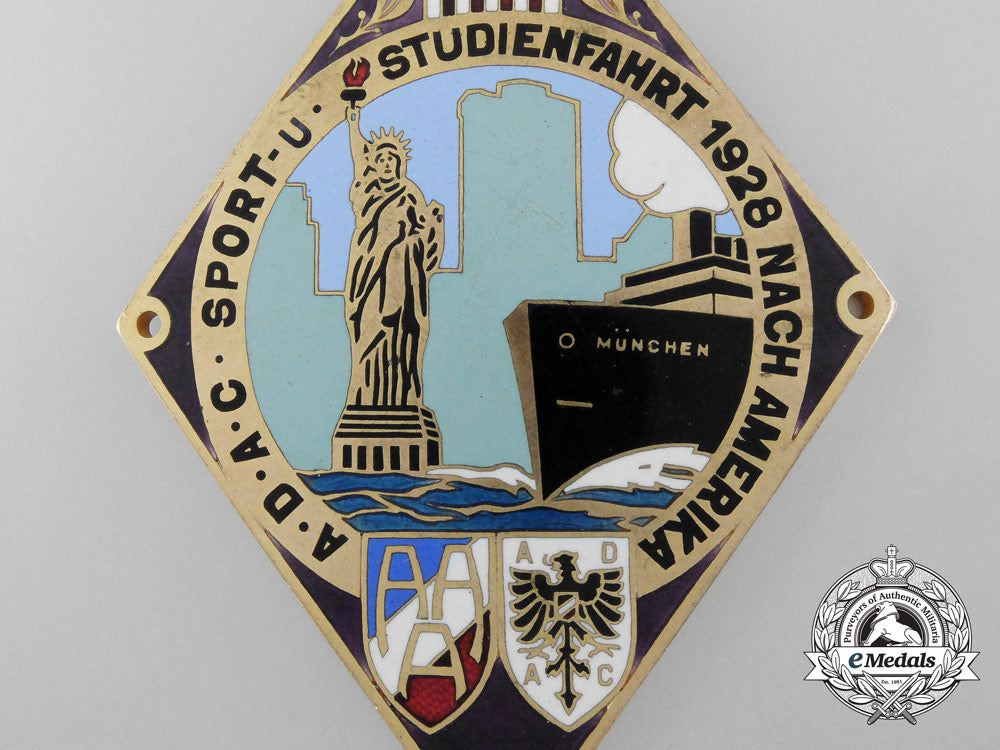 An Adac Sport Student Cruise To America Automobile Grill Plate 1928